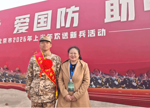 2026年3月23日,北京市2026年上半年欢送新兵活动隆重举行。北京外国语大学德语学院2024级本科生许家硕身着军装,身姿挺拔,在校党委武装部、德语学院老师,父母及校国防教育协会学生骨干的陪同与祝福下,即将开启军旅生涯。